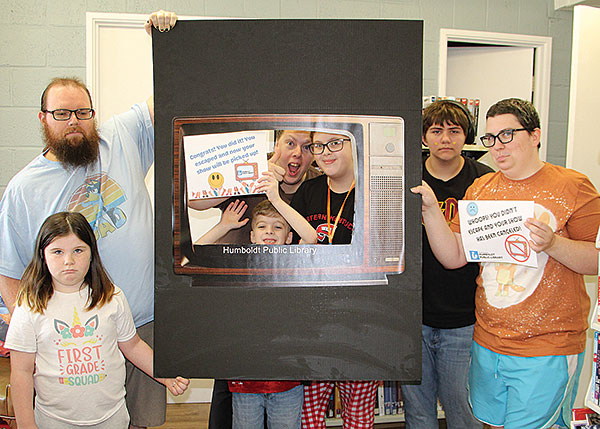 ESCAPE ROOM – These two families competed in the library’s escape room last week where the object of the game was to find clues to unlock the door in 45 minutes or less, which would bring back their favorite canceled tv show. The Wray family (inside the television) of mom Dotti, 12-year-old Mackenzie and 7-year-old Colton won, while the McKee family of dad Justin, mom Megan, 6-year old Claire and 13-year-old Sam could not find all the clues, keeping their favorite show canceled.