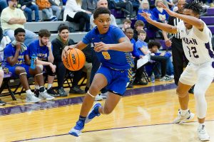 Westview’s Miles Brown (5) drives to the basket against Milan during a District 14-2A game at Milan on Jan. 26, 2024.