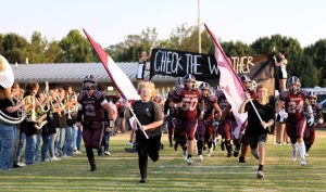 West Carroll runs through the banner before playing Gibson County in Week 1 football action.