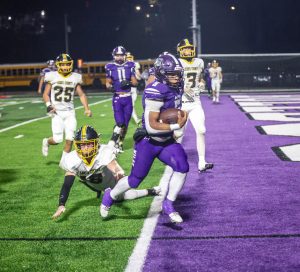 Milan’s Jaydon Peete (5) scores a touchdown against Lewis County during a Class 2A high school football first round game at Johnnie Hale Stadium on Nov. 8, 2024.